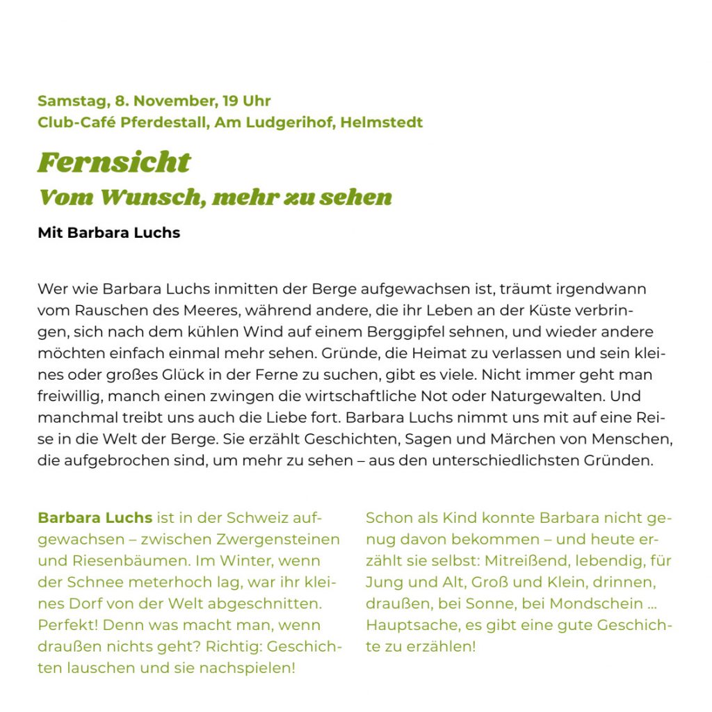 Auch 2025 gibt es wieder tolle Gäste und AkteurInnen auf der Bühne. Außer der Veranstaltung am Weltgeschichtentag werden die Offenen Erzählbühnen vom VEE unter der Leitung von Sybilla Pütz durchgeführt. Unten das Programm für Hannover und Braunschweig, oben die Ankündigung für die Schweizer Erzählkünstlerin Barbara Luchs. Wir freuen uns drauf!