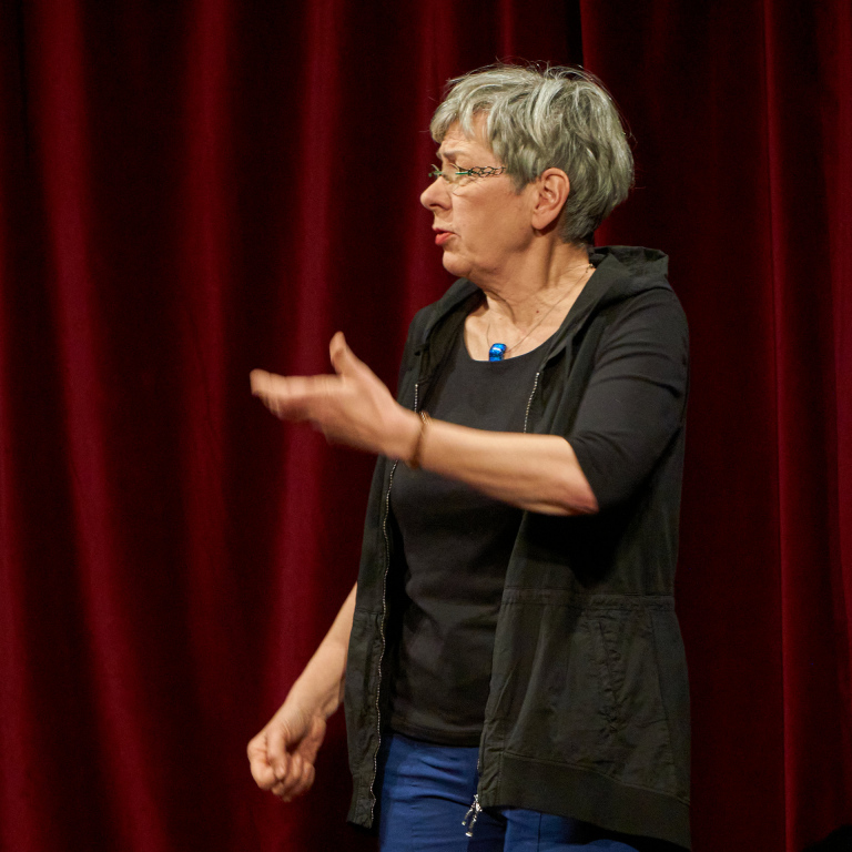 Sie spielte 30 Jahre beim Improvisationstheater Emscherblut, bietet Fortbildungen an und arbeite als Regisseurin. Aber das ist eine andere Geschichte….